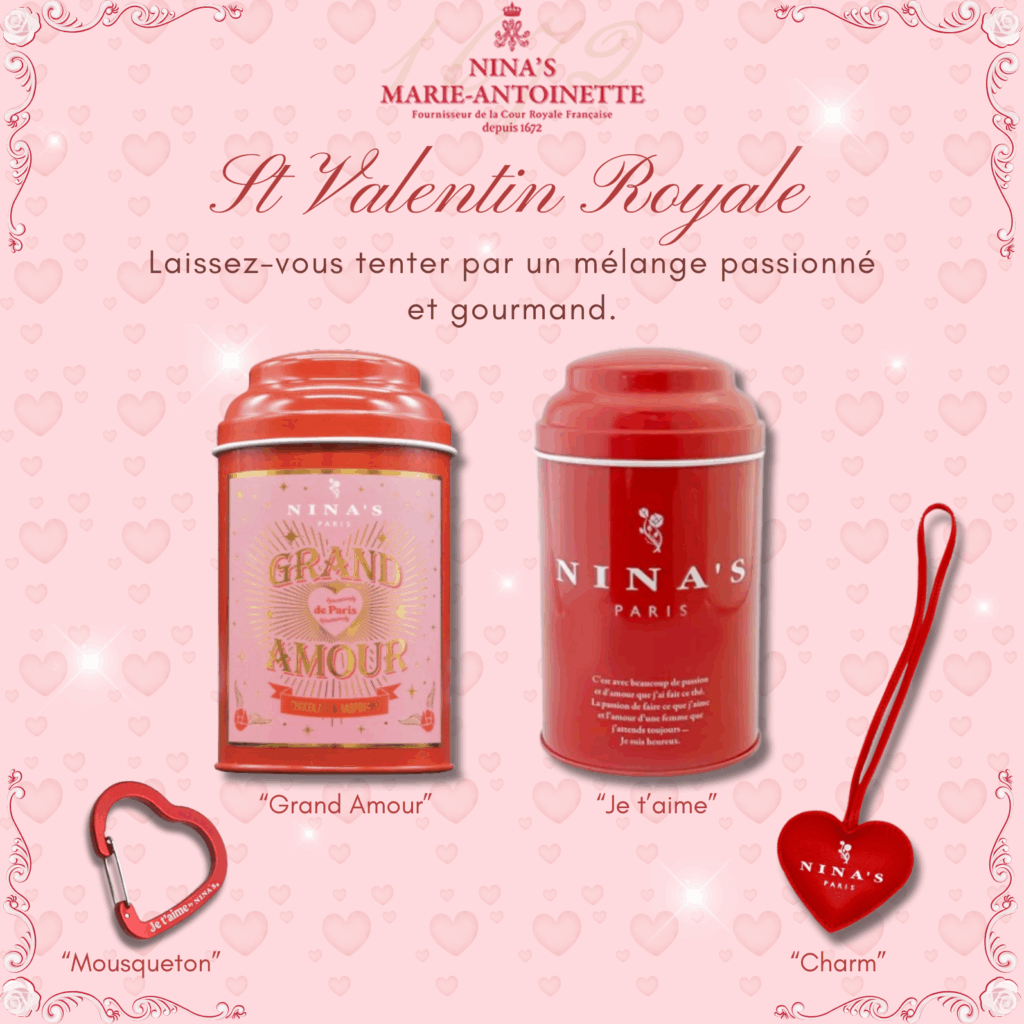 Cette recette de NINA’S Marie-Antoinette, concentre avec raffinement les essences préférées de la Reine et parfume les thés de la maison de ses notes envoûtantes et fleuries.